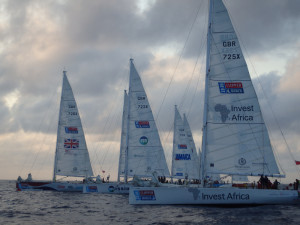 The Clipper Race boats line up at the start of Race 9 from Singapore.It was a dramatic start to Race 9 for the 12-strong Clipper Race fleet who left One15 Marina, Sentosa Cove Singapore yesterday ahead of the 2,500 mile race to Qingdao, China.