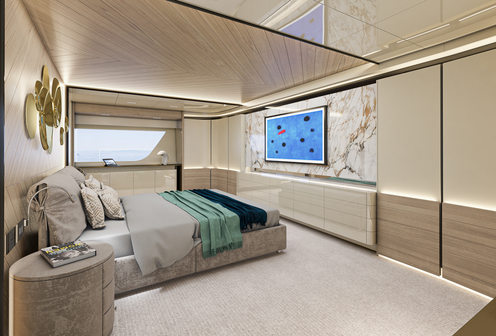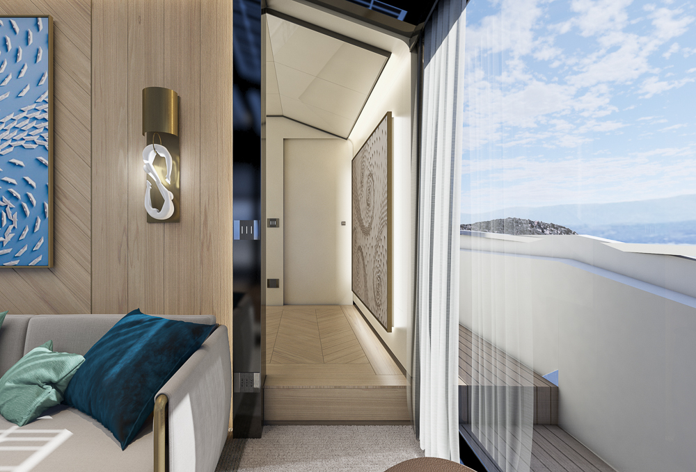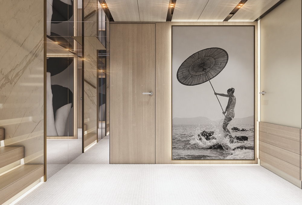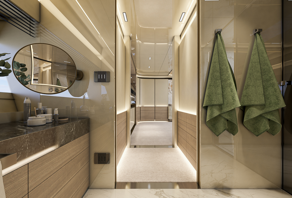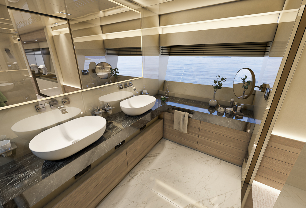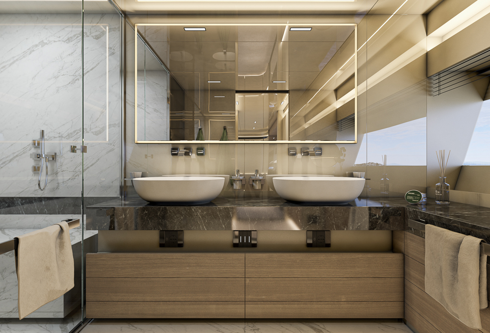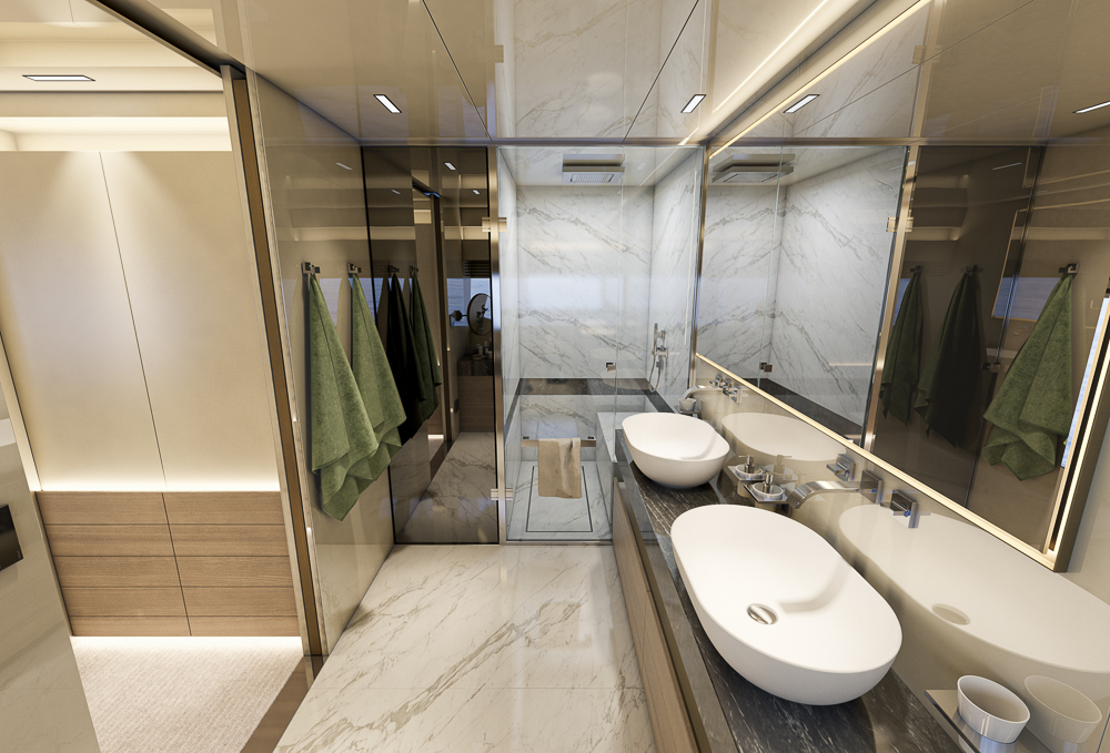 There are four double cabins for guests on the lower deck, while the main deck’s bow area is dedicated entirely to the owner’s apartment – 40 square metres that guarantee perfect privacy.
