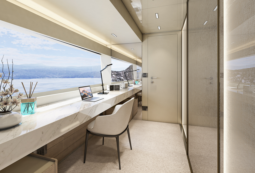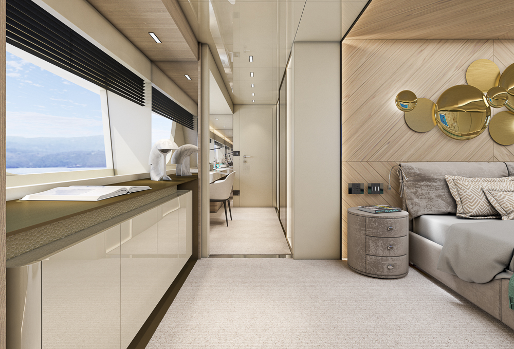 This approach is the complete opposite to what usually occurs when designing a yacht this size, in which the components are integrated in the structures. The decision to use loose components essentially everywhere in the A115 (cabins, hall, dining area, etc.) is linked to enabling the owner to easily replace the components if they wish, which allows them to choose from a broad range of solutions.