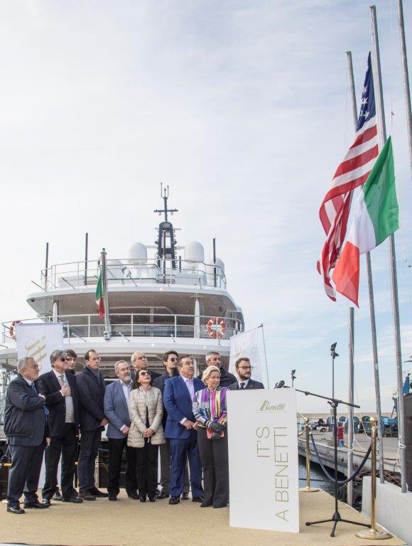 The Italian yacht builder celebrated the delivery of “Spectre”, a unique in the world 69-meter full custom megayacht to repeat clients, US couple John and Jeanette Staluppi, in an exclusive and lavish ceremony at its Livorno shipyard.