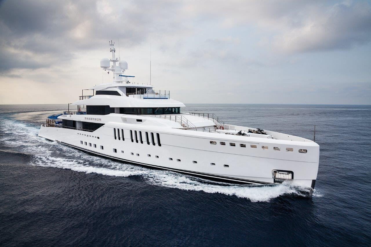 The two Caterpillar engines (1,380 kW each) deliver a top speed of 15.5 knots, while the yacht’s range stands at around 5,000 nautical miles at a cruising speed of 12 knots.