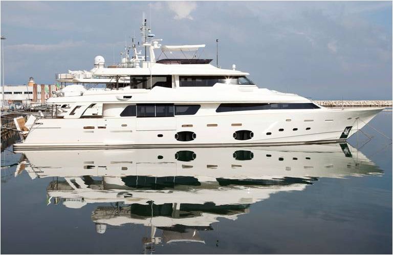 The new yacht in the semi-displacement line stands out for its innovative layout solutions, great onboard liveability and special technological equipment. Ancona, 2nd May 2013 – Ferretti Custom Line, a brand of the Ferretti Group producing fibreglass maxi-yachts between 26 and 38 metres in length, delivered the twelfth hull of the semi-displacement line Navetta 33 Crescendo at its shipyard in Ancona in the second half of April. This new model marks yet another important step forward in the brand’s international development. “We are particularly satisfied with the completion and delivery to the Owner of this new Navetta 33 Crescendo – explains Karin Paggi, Ferretti Yachts’s and Ferretti Custom Line’s EMEA Sales Manager. In particular, we are delighted to have introduced this new unit to the Continental and Eastern European market, which has always widely appreciated Ferretti Yachts’s and Ferretti Custom Line’s flybridge yachts.” Navetta 33 Crescendo is the result of the close cooperation between Studio Zuccon International Project and the AYTD – Advanced Yacht Technology & Design, the Ferretti Group’s naval research and design centre. Its classical outer lines harmoniously blend with the contemporary design of the interiors, which can be fully customised to the Owner’s taste. Indeed, just like on the entire Ferretti Custom Line range, every non-structural detail, such as furniture and furnishings, fabrics, and décor, can be modified to meet the requirements of the Owner who, supported by Gruppo Ferretti’s architects and designers, can choose from among the best Italian and international companies to create a truly “tailor-made” yacht. Plenty of natural light brightens the spacious interiors filtering through the large glazing which makes the yacht’s profile truly unmistakable and reflects this model’s strong personality: Navetta 33 Crescendo stands out in its segment for its 3 full decks perfectly integrated into the line of the yacht, for an innovative new feature – a large sundeck -, as well as for a series of design solutions aiming to let its guests really enjoy the emotion of direct contact with the sea. On the main deck, the large salon features a system of sliding glazed doors on the starboard broadside, with a collapsible gunwale which minimises any existing visual and physical barriers between the yacht and the sea. The full-beam Owner suite is located at bow, in a privileged position. Onboard guest-and-crew circulation routes have been skilfully separated by making the crew area directly accessible from the galley. The crew area is completely separated from the guest cabins located on the lower deck, which are all fitted with large open view windows that characterise the profile of the hull also from the outside. Also deserving mention are the extraordinary innovations found in the upper part of the yacht, from the dining area on the upper deck – which features an original system of circular sliding doors resulting in a very flexible layout and interior space division – to the restyled sundeck. MAIN DECK From the large cockpit, furnished with two facing Flow sofas by Manutti and two telescopic coffee tables that can also be used as dining tables, access is gained to the salon on the main deck, characterised by central walls and furniture in American oak wood and Stile white/grey parquet floorings. The salon features a large conversation area, on the left, furnished with a custom-made sofa designed to the Owner’s taste and featuring a series of oak wood shelves integrated in the armrest and a Poltrona Frau Ninfea model coffee table in leather, oak wood and dark lacquered wood. To the right is an original bar corner, featuring a unit with a sliding wooden surface which hides a Corian sink. The TV screen standing on the unit is surrounded by a cream shade leather frame and can slide forward revealing a fully-equipped bar area. Further on, to starboard, are the sliding glazed doors leading to the broadside with collapsible gunwale. The glass partition is covered by an American style curtain. To the left, besides the conversation area, stands a large Riva 1920 oval table that can seat up to 8 people, with Maggy chairs by BPA International. Amidships, on the right, a stairway connects the upper and the lower decks, while on the left access can be gained to the galley with dinette, by Arclinea, which can also be reached through a door on the left broadside and from the crew area, at the extreme bow of the lower deck. The Owner area is located forward, a location ensuring the utmost privacy. This spacious area is brightened by plenty of natural light which filters through the wide side glazing and is characterised by the kaki shade of leather and of the headboard and the cream shade of the walls, with the storage compartment for the curtains. This area is divided into a working zone furnished with a writing desk with an Asterix model cream-shade leather armchair by Poltrona Frau and a large walk-in wardrobe located to starboard. A second working zone has been obtained along the left broadside, and features a small vanity set and a cream leather seat. The spacious bathroom is dominated by two types of marble which alternate in the shower walls, just like in all other heads on this Navetta, as well as by lacquered surfaces. The large custom-made shower box has been fitted, upon request by the Owner, with two shower heads and two benches, and features Grohe taps and Gedy accessories, both belonging to the Veris line. Another distinctive element shared by all heads on this Navetta are the Corian washbasins which differ from previous models for their curved lines – a small but significant detail that highlights Ferretti Custom Line’s will to offer the utmost onboard safety and comfort by paying attention to the very tiniest details. LOWER DECK Going below deck via the stairway located amidships, guests can reach the lower deck lobby, featuring c