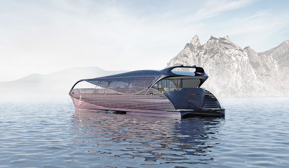 The Swiss company SolarImpact Yacht AG has developed the first ocean-going solar yacht. Their innovative high-tech design concept will be presented for the first time at the Cannes Yachting Festival 2018 in Palais Stand PALAIS089. Visitors to the fair can explore a virtually 3D model here. The solar yacht is energetically almost self-sufficient and with a top speed of over 20 knots also exceptionally fast. The reason for this is the choice of technical components, which together allow a high overall efficiency of the yacht and are optimally controlled by using artificial intelligence (AI). All important systems are highly automated so that the yacht can be maneuvered by just one person.
