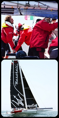 Once into the new breeze, MaseratiMulti70 was able to put its foiling capability to good use to overtake Phaedo3 and close up on Mighty Merloe at speeds up to 30 knots.
