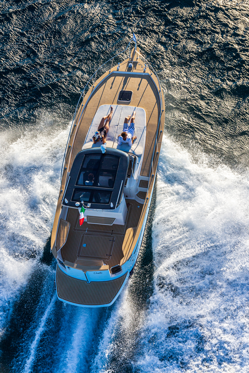 “We were not asking for a simple restyling, but for a completely new boat that embodied the elegance, charm and nuances of the boats of Italy’s golden decade while projecting them into the future.” These are the requests that Tommaso Spadolini received from Gianarnaldo Moreno and his sister Benedetta, representing the second generation of the Moreno family, who have taken over the reins of the Patrone shipyard since the 1980s.