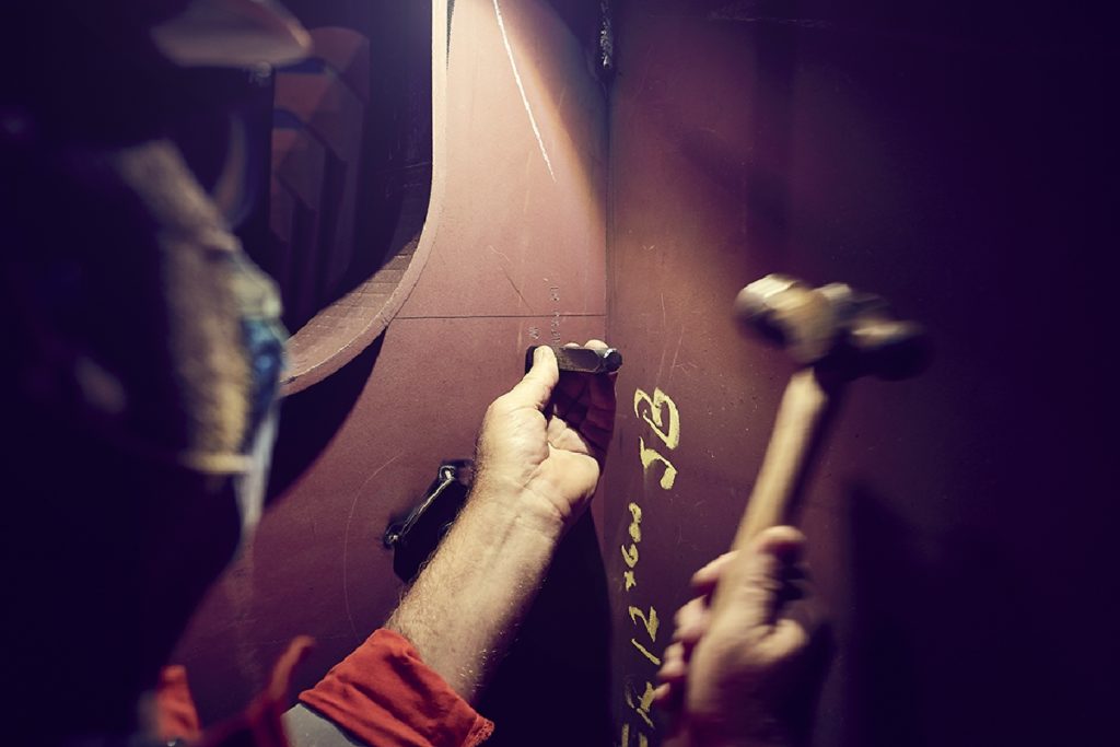 Project Sparta the construction begins-The Owner’s team chose a Greek coin featuring Poseidon and a galloping horse to celebrate the start of construction on this new yacht. Glued to a steel plate, this ancient depiction of the Greek god of the sea was welded to the keel.