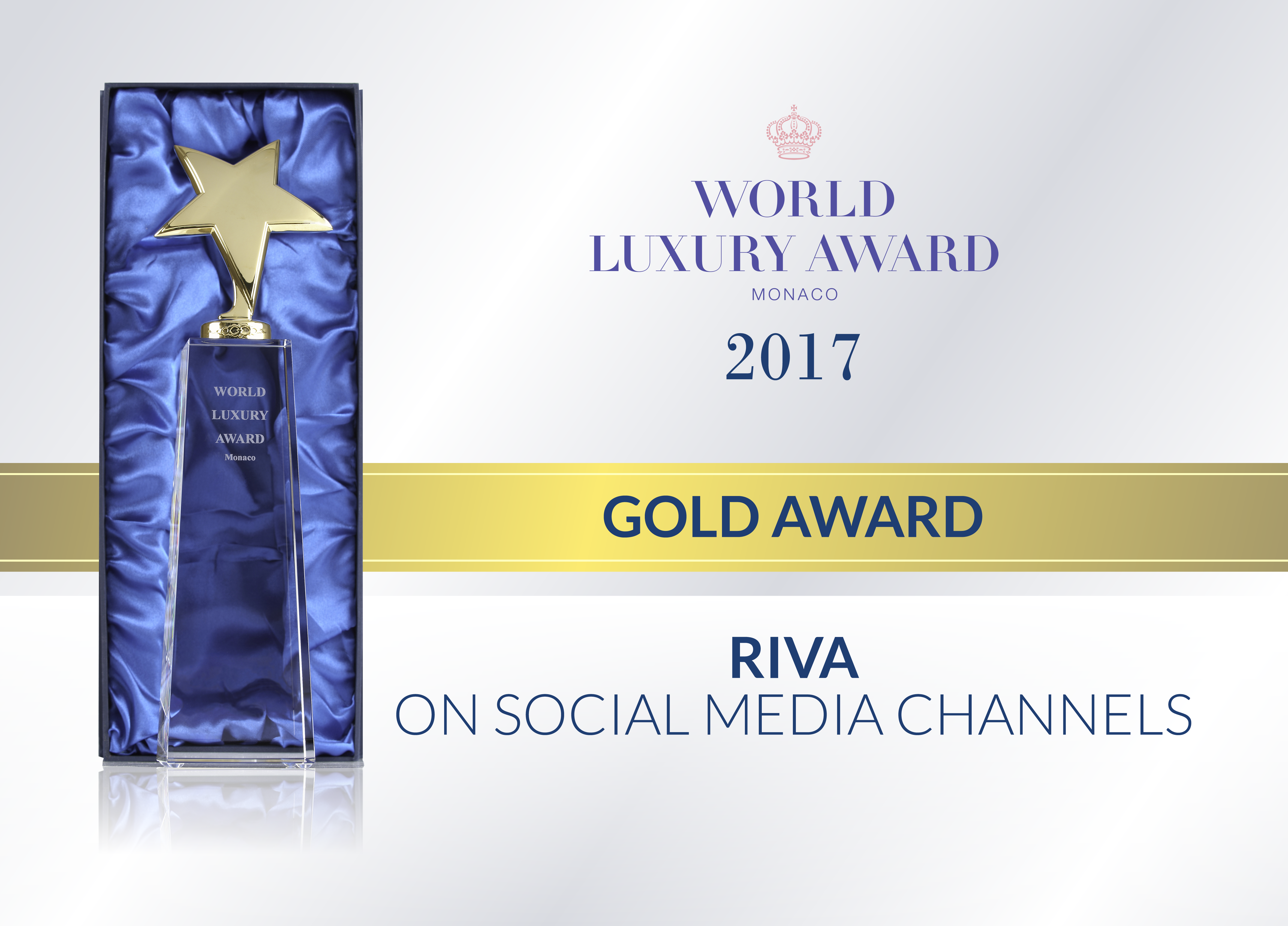 arlo, 12 December 2017 – The Riva legend wins over new enthusiasts every day, including on the web. Indeed, it is for its brilliant management of social media channels that Riva has been awarded the prestigious Gold Trophy in the category “Cars & Yachts” at the “2017 World Luxury Award” in Monte