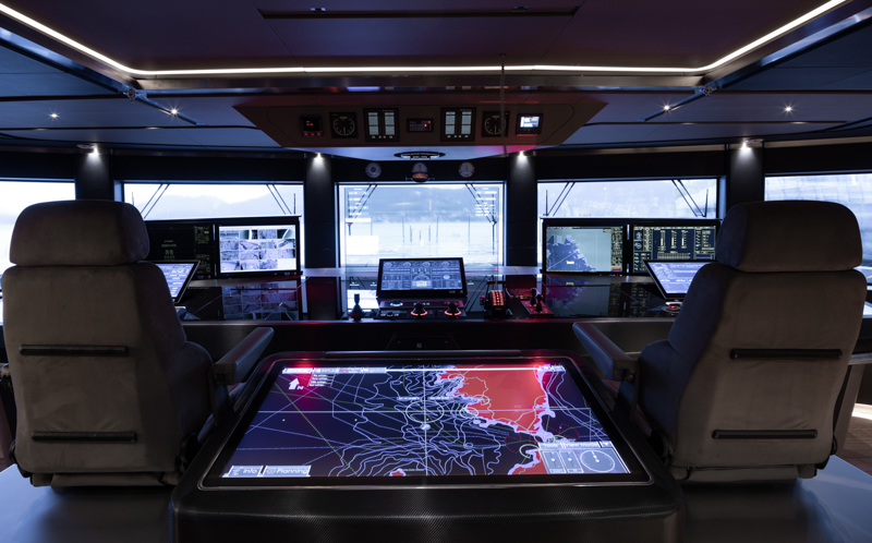As every I-Bridge® solution, it was developed and tested entirely in-house, in order to guarantee the handling of the control interfaces and a simplified management of the on-board systems. This was also achieved through integrated monitoring systems developed by Onyx Marine Automation, a TEAM Italia group company.