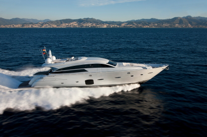 The new 75’ Venere Super is the result of the collaboration between Officina Italiana Design, AYT – Advanced Yacht Technology – and Centro Stile Ferrettigroup. The new edition of one of the shipyard’s most popular models has been renewed to optimize the space and internal furnishings appointments. The fly bridge of the new 75’ Venere Super has been enriched with a hard top featuring an elegant and sleek line that allows for total owner maneuverability. The craft’s most significant innovations are located in the interior design and include the removal of the stairway from the salon to the fly bridge, which makes it possible to extend the fly bridge sundeck to create a more functional galley below decks with new units as well as the option of installing a side-by-side fridge-freezer. Another addition to the craft is the dividing wall between the helm station and the dinette, now equipped with new motorized leather Venetian blinds, which plays on the use of light and features beautiful steel accents as well as mirror fitted doors to maximize space. The 75 Venere Super’s new color of light leather in the dinette is also incorporated on the ceiling and provides for a completely different appearance to that of the previous version. Another innovation is the serving hatch, which when opened onto the dinette provides a “window” effect in the dining area. Moreover, large windows in the hull illuminate the entire master suite and the majority of the guest cabins as well. The interior furnishings have also been revised and improved in the Super version, focusing on simple, refined style. The use of bleached oak finish coupled with Africa and sand colored leather, white lacquer and new chosen color palette for the galley and helm station make the various areas of this model even more elegant and refined.