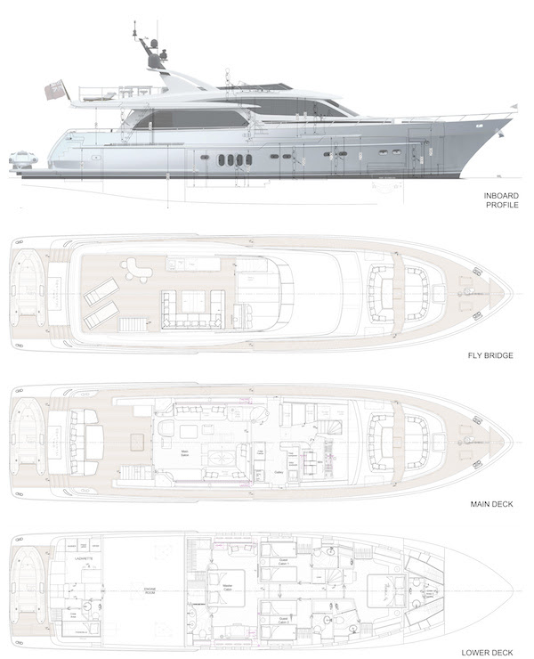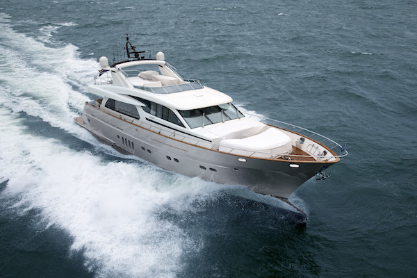 This striking 27-metre motoryacht features a round-bilged fast displacement hull – painted in a stylish silver metallic colour. The 6.72-metre beam ensures an exceptionally spacious interior with lots of lounging space and ample accommodations.