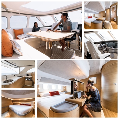The Z55 unit – on display at the Cannes Yachting Festival 2017-features a contemporary airy décor in light oak with grey finish, which better suits the European market. The American version delivered to a customer earlier this year has more wood accents in both the interior and the exterior.